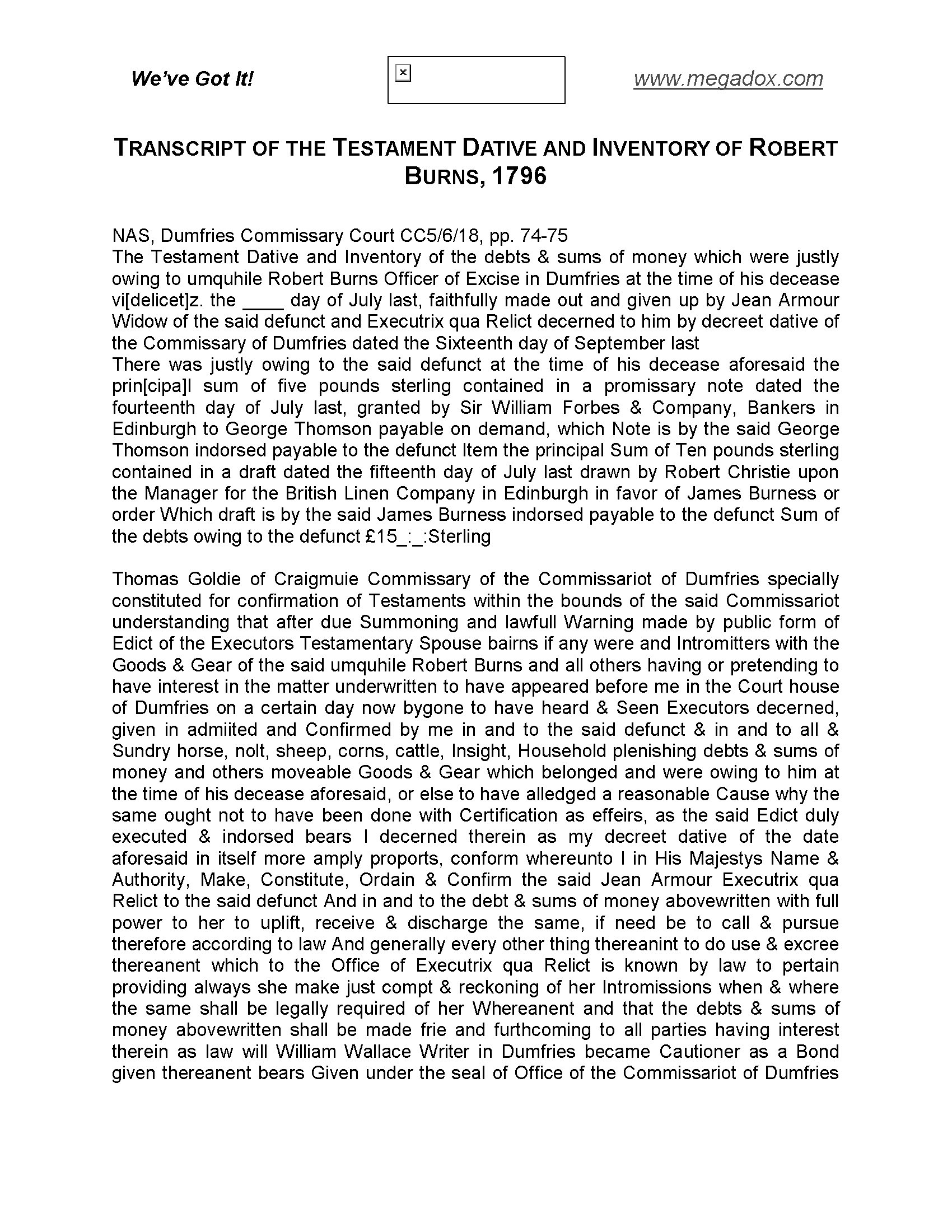 Download this free copy of the last will and testament of Rob Roy (1671-1734).
