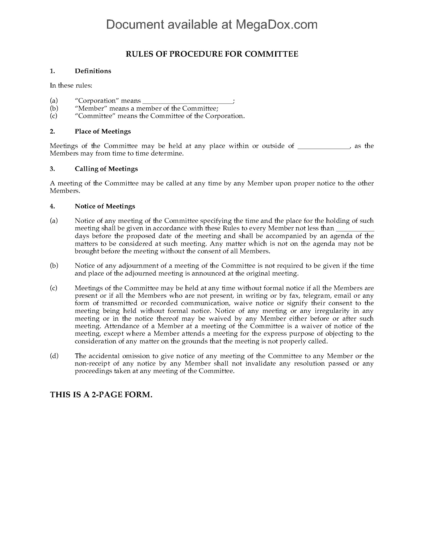 - The resolutions deal with all matters relevant to the formation of the committee, including: