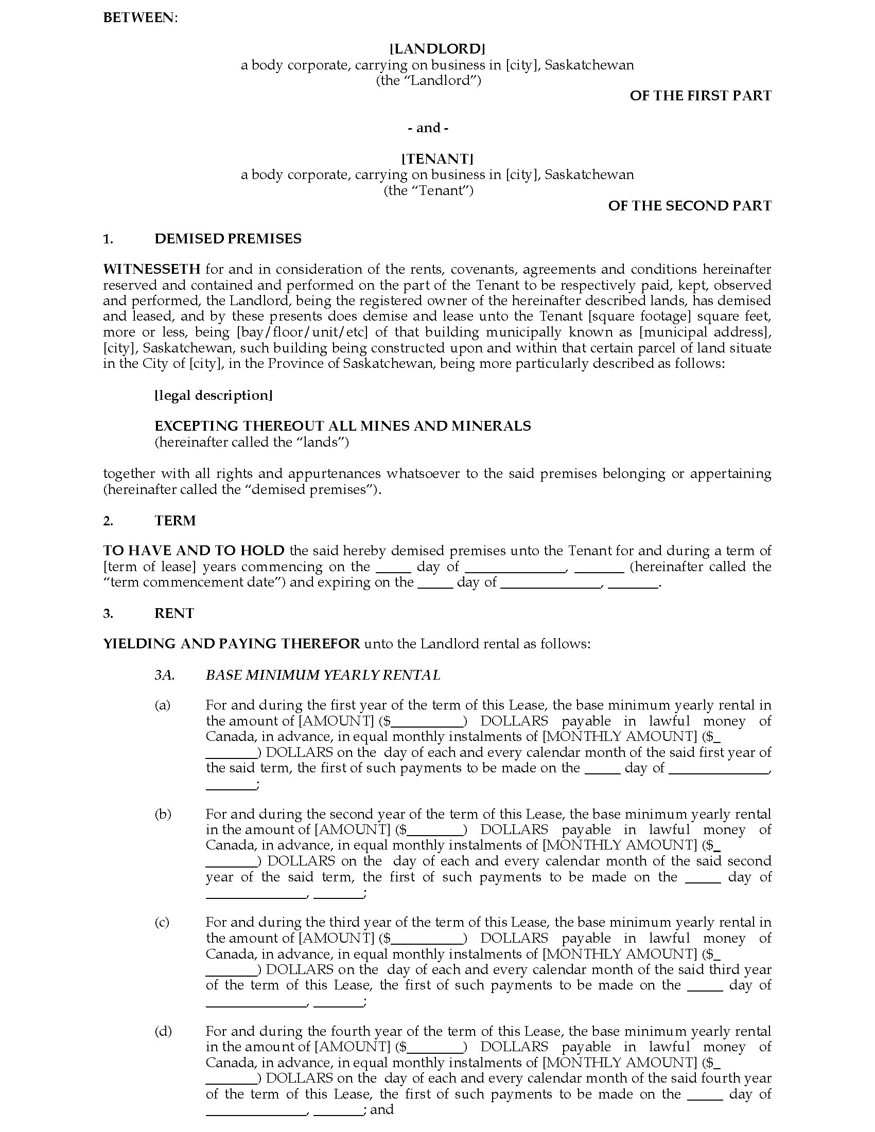 Saskatchewan Offer to Lease Commercial Premises