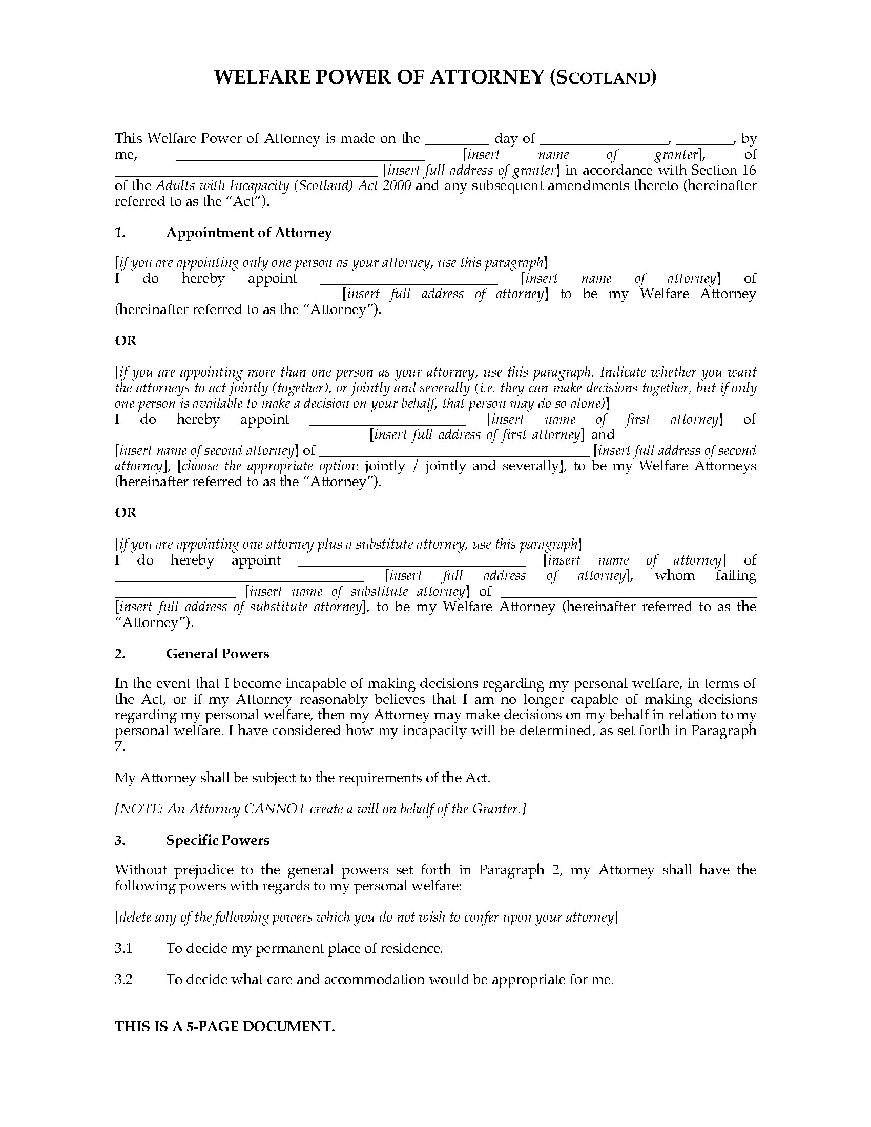 Is your health declining? Are you worried about how you will handle your personal affairs? You can make a Welfare Power of Attorney with this easy-to-use sample form for Scottish residents.