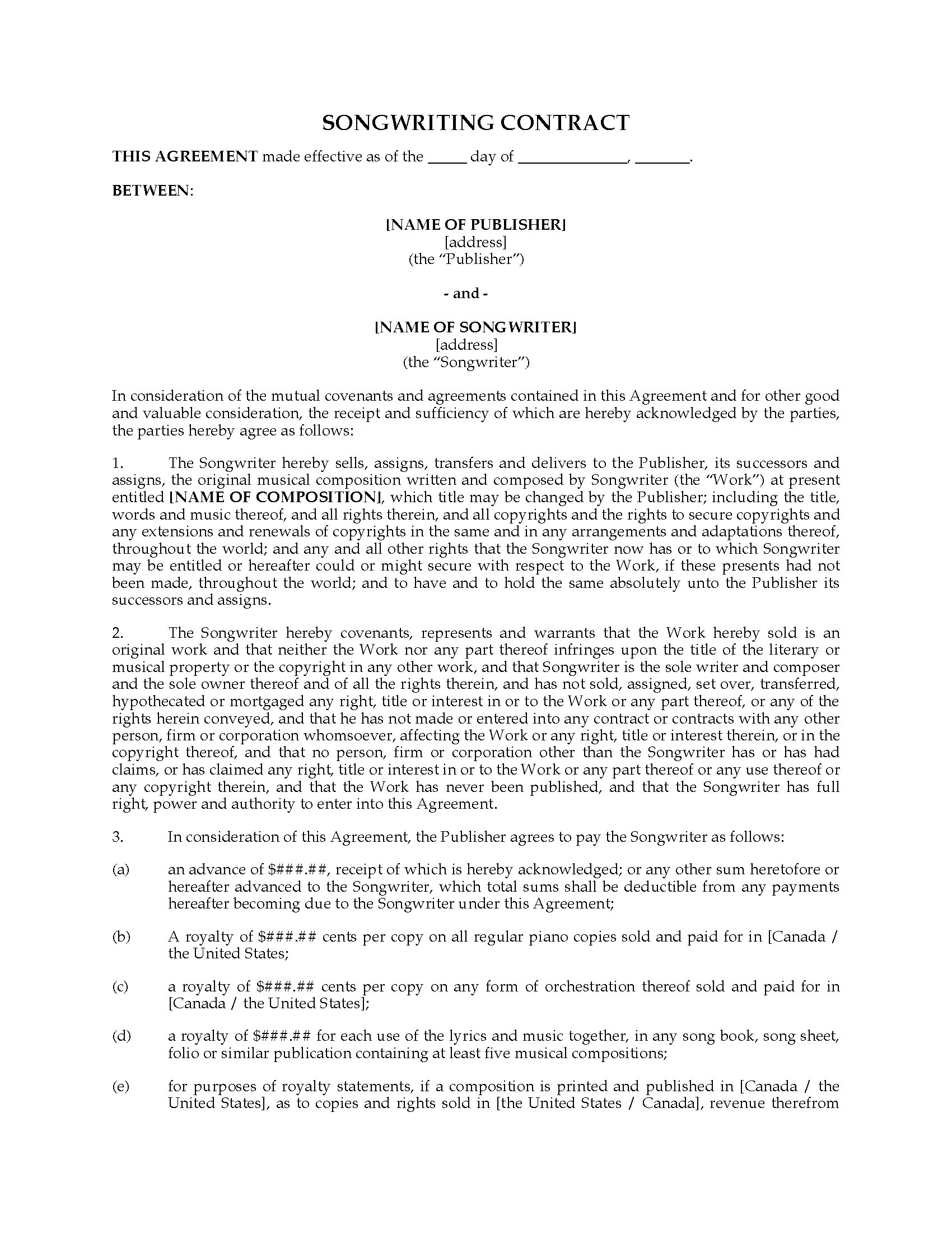 - The publisher will have exclusive access to the songwriter's services during the contract period.
