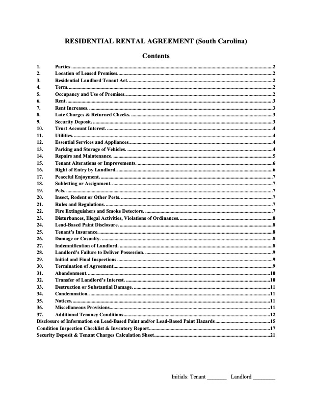 Lease a house or apartment in South Carolina to a tenant with this Fixed Term Residential Lease Agreement.