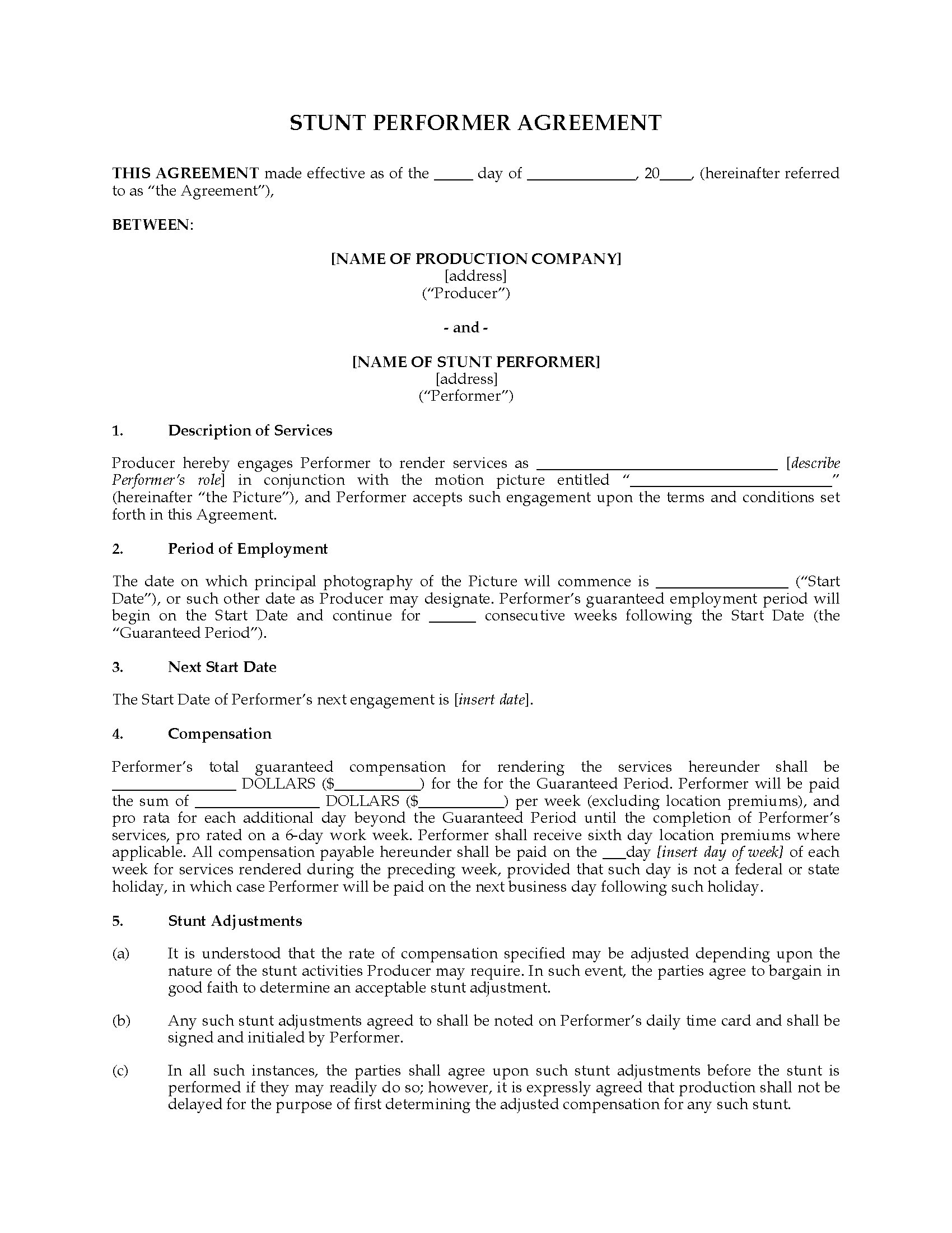 - This Animal Performer Agreement template is available in MS Word format.