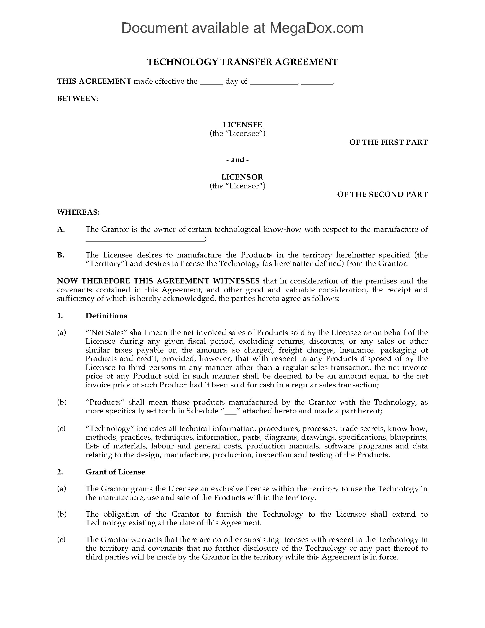 - Scope of Agreement. The Transfer Agreement covers the intellectual property being transferred as well as associated documentation and know-how.