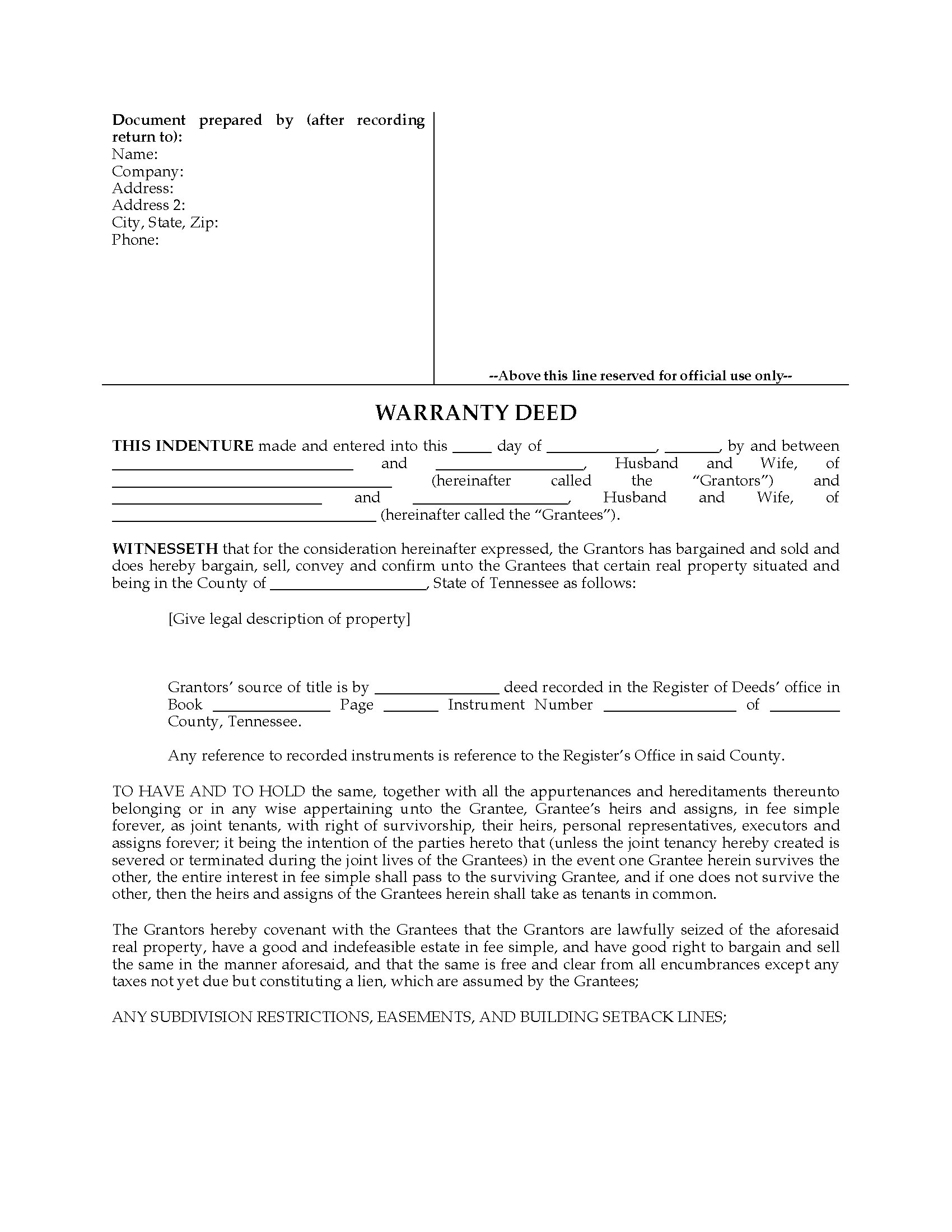Tennessee Warranty Deed Form