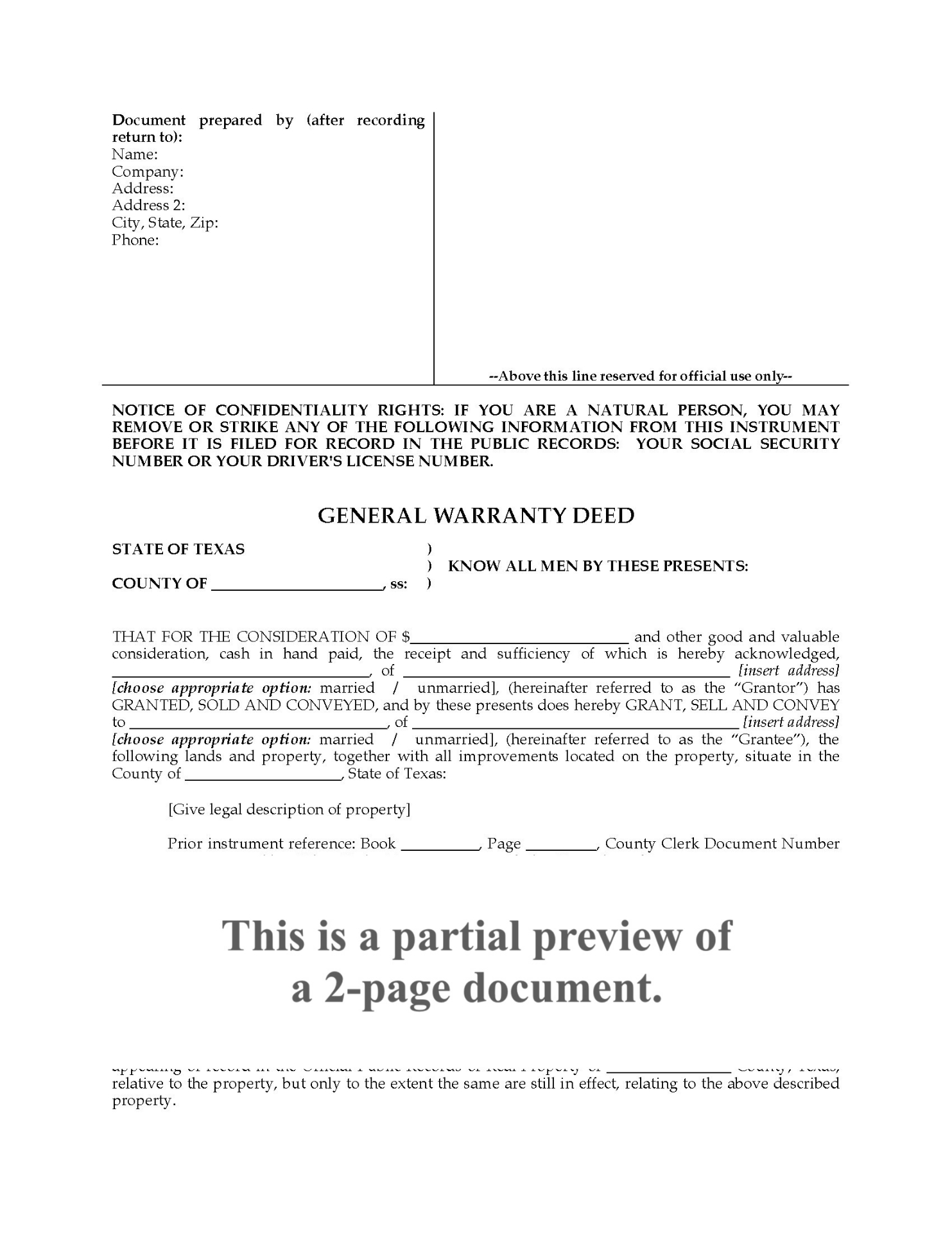 Transfer your interest in a piece of real estate with this easy-to-use Texas Special Warranty Deed form.