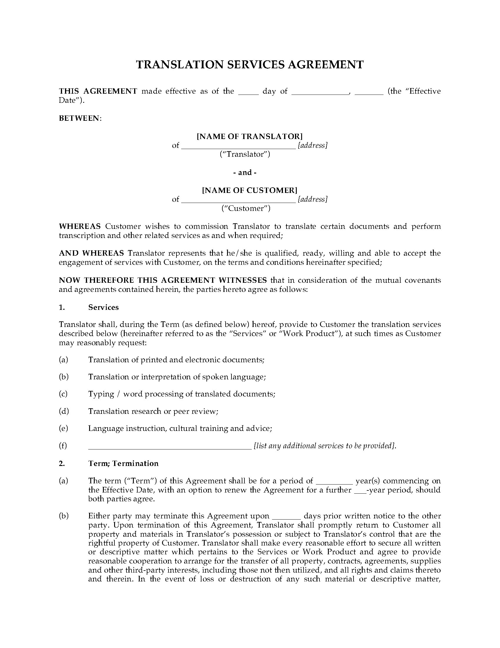 Translators, hire out your services for translating written or spoken materials with this Translation Agreement.