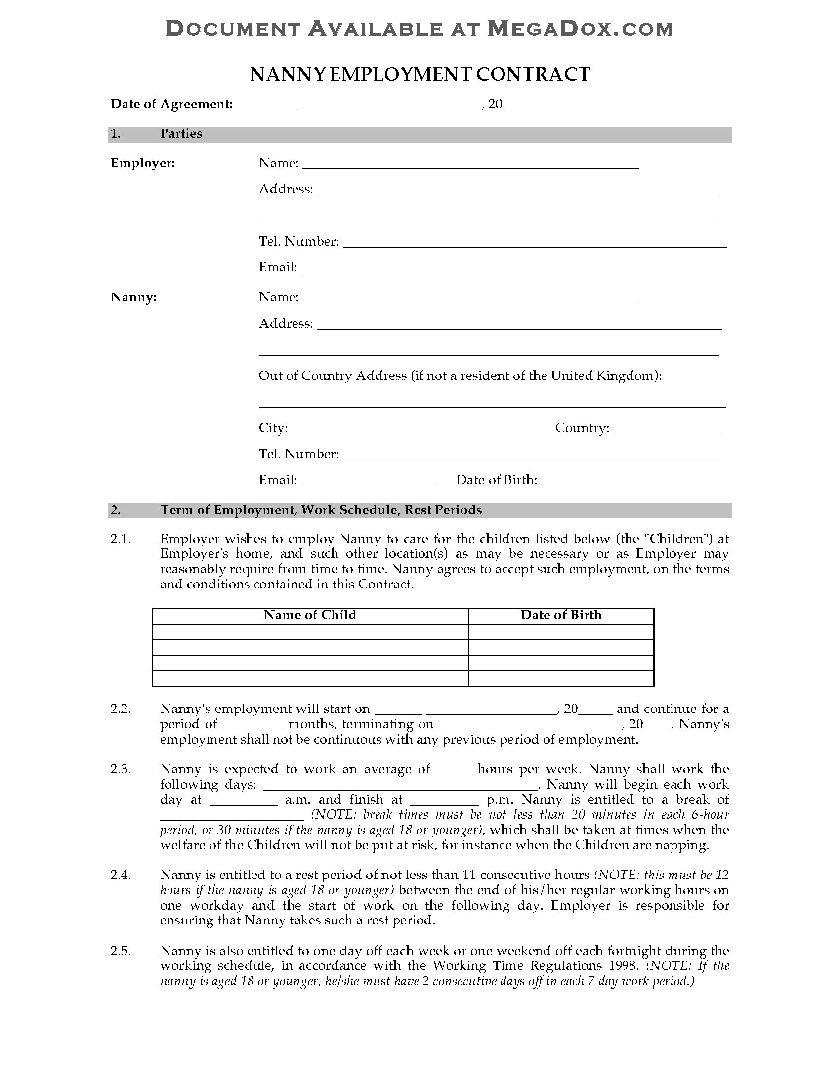 - The form can be used for either live-in or live-out nannies.
