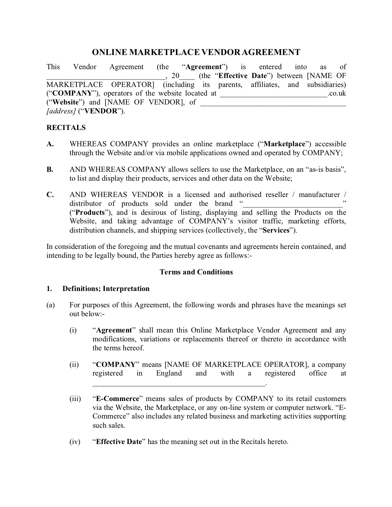 - Disclaimers for e-malls and catalog sites that sell products from various suppliers.