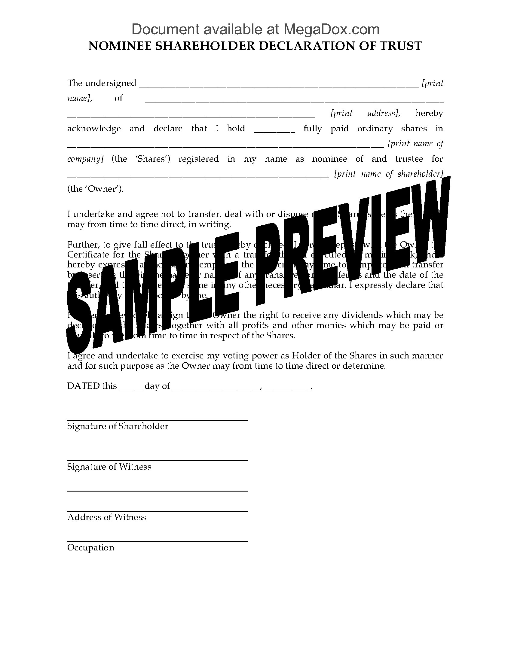 Prepare a Trust Declaration by Nominee Trustee with this easy template, for shares of a UK company which are being held in trust.