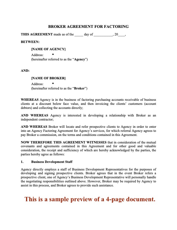 - Under this Agreement (also called a debt purchase contract), a company needing cash for operations sells its accounts receivable to a factor for an immediate cash injection, at a discounted rate off the face value of the accounts.