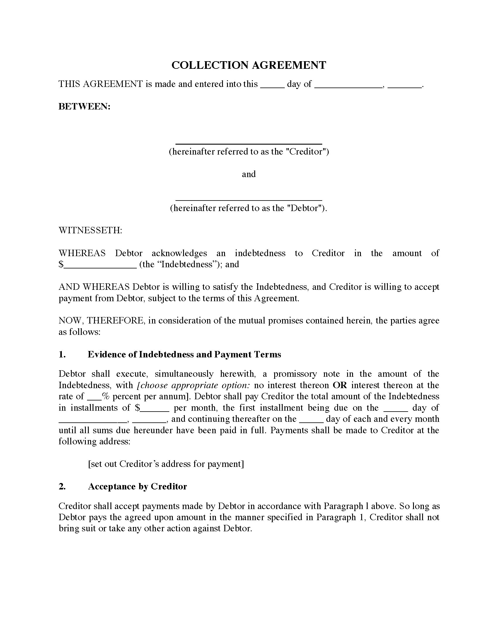 USA Debt Collection Agreement