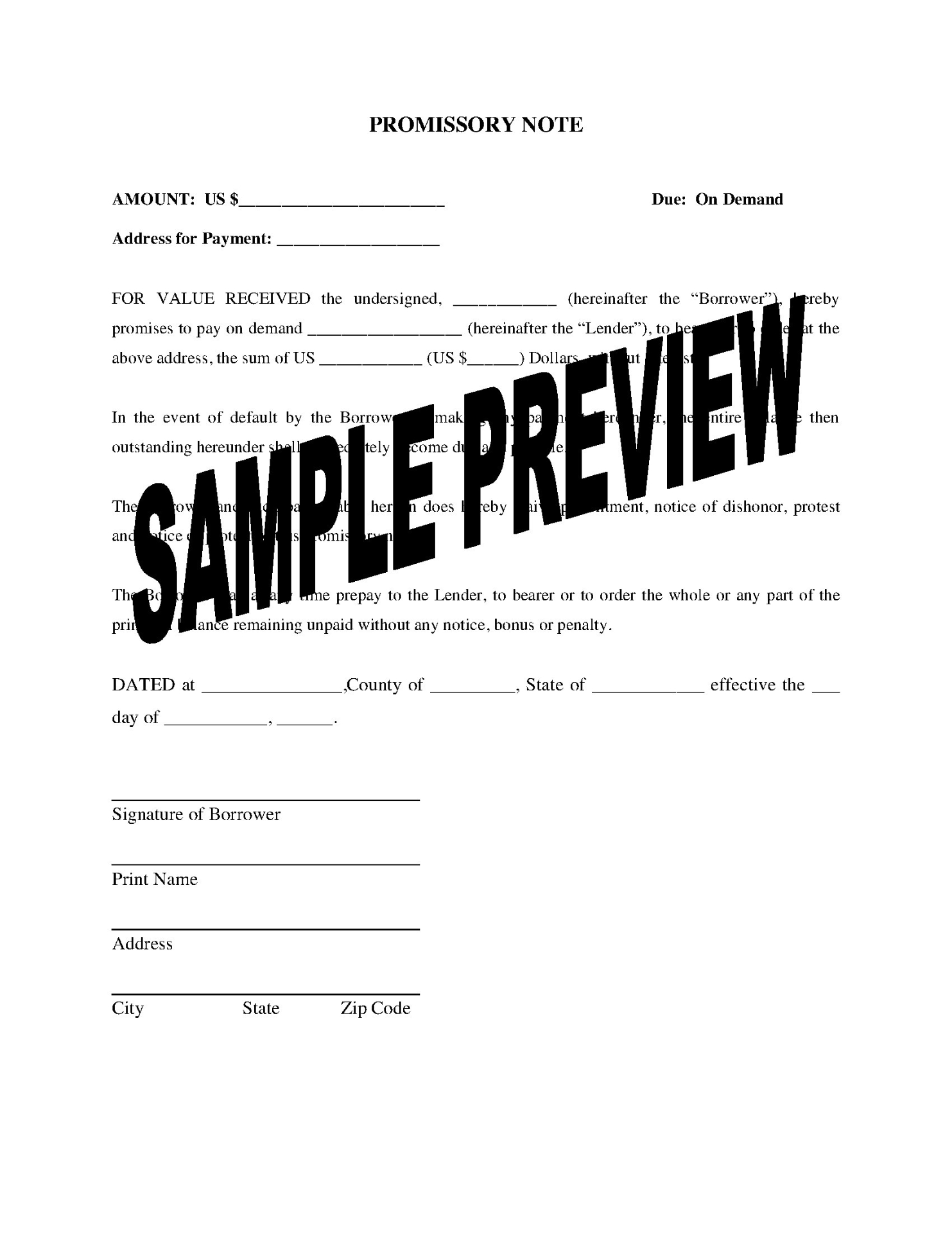 - Download a free copy of the Demand Promissory Note and keep it handy for the next time you make a loan to anyone.
