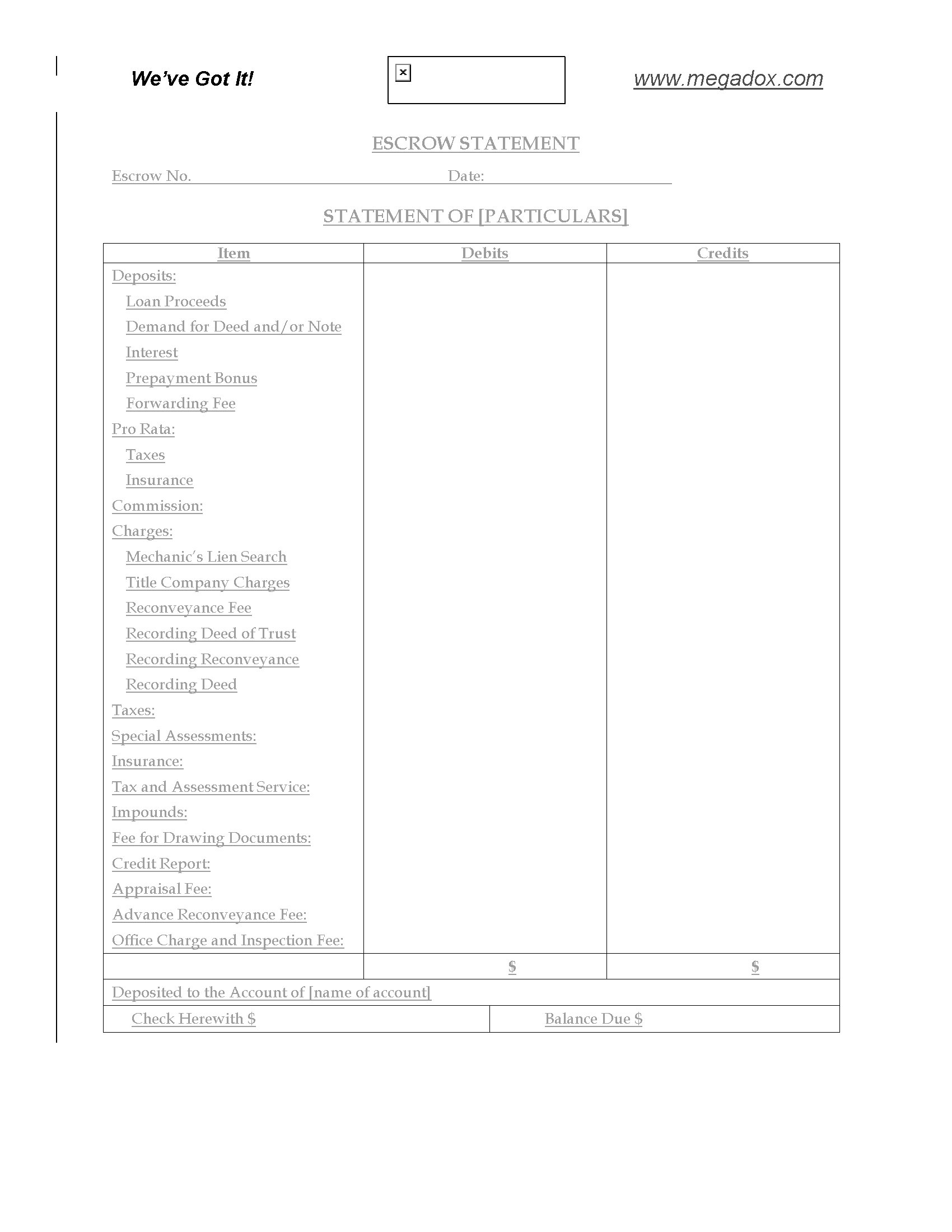 Use this free Escrow Statement of Particulars to determine the adjusted balance of purchase money still owing in a real estate transaction.