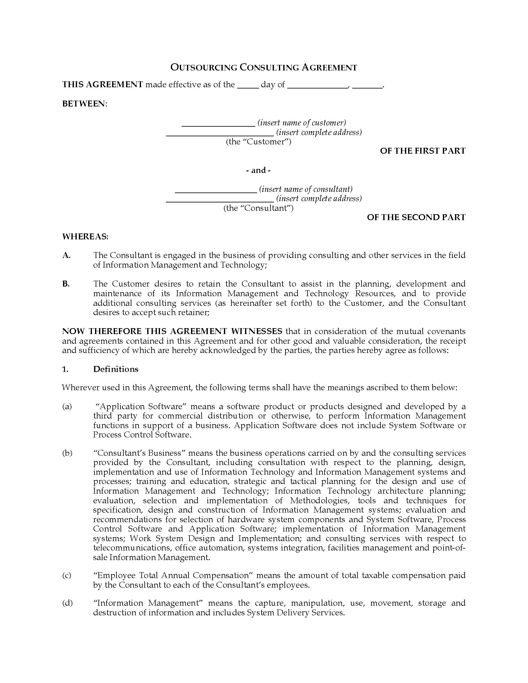 IT Outsourcing Consulting Agreement