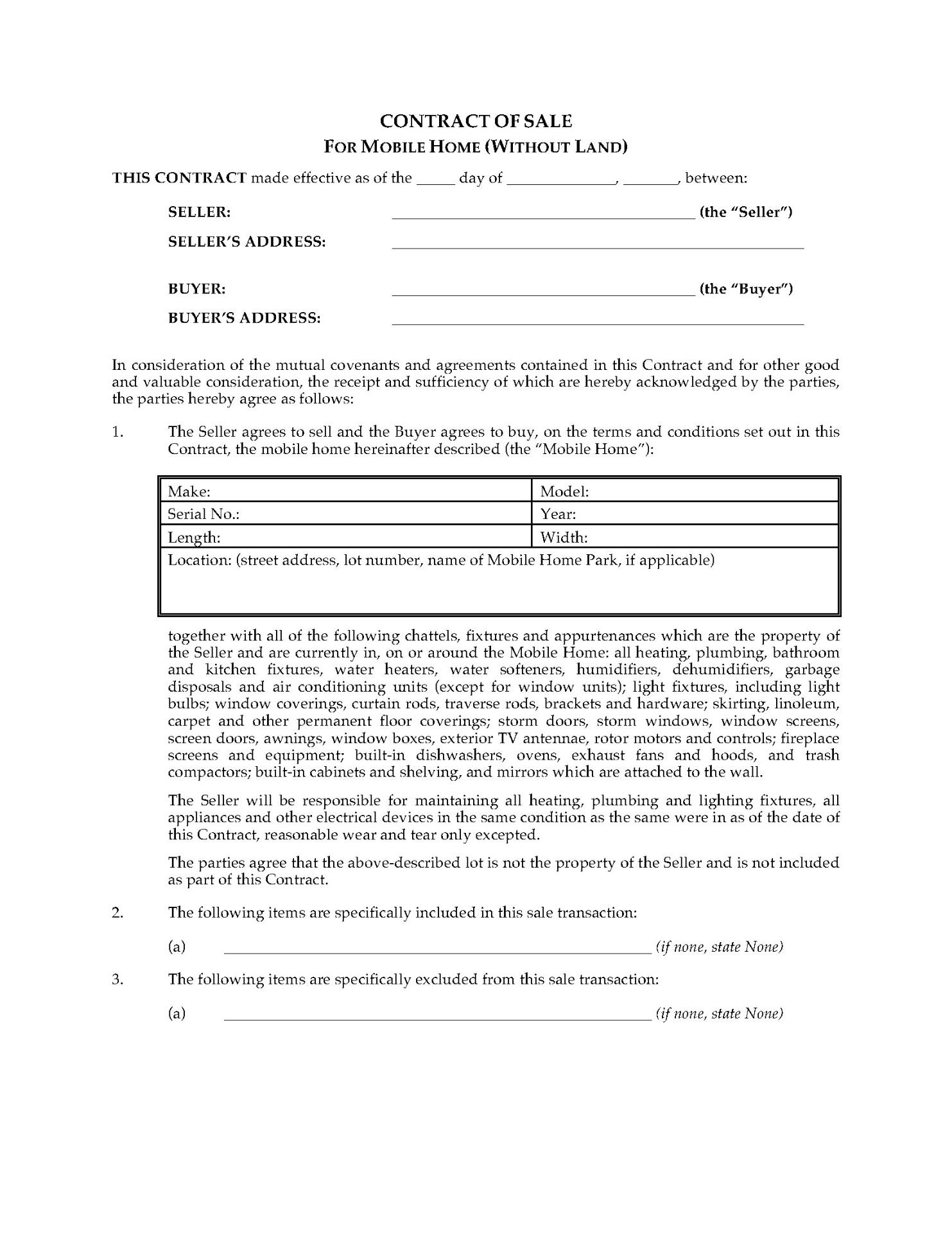 The seller agrees to accept a specified price for the mobile home and appliances, equipment and other items sold with it, regardless of whether the listing agent sells the mobile home for a higher price.