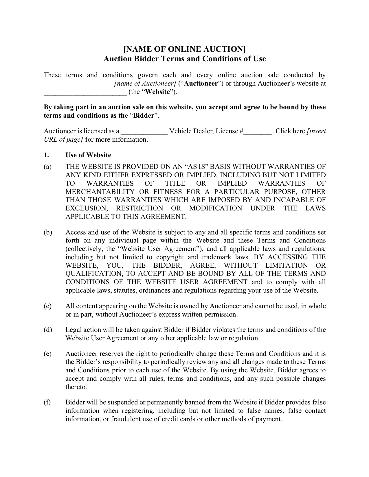 - The contract provides for various types of auction methods, including online, live, absentee, phone, etc.