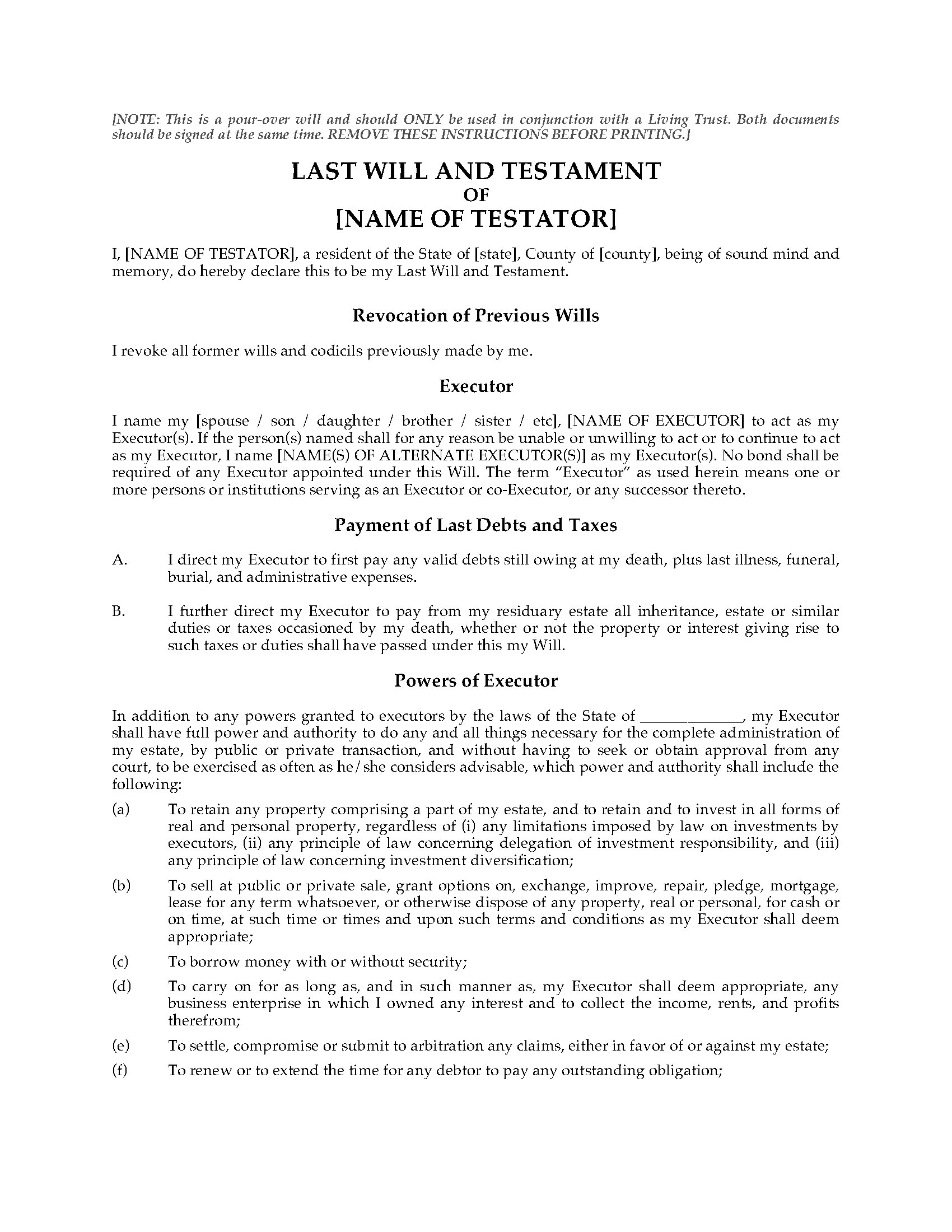 - Last Will and Testament with self proving Affidavit, with instructions to help you complete the document and special provisions for Louisiana.