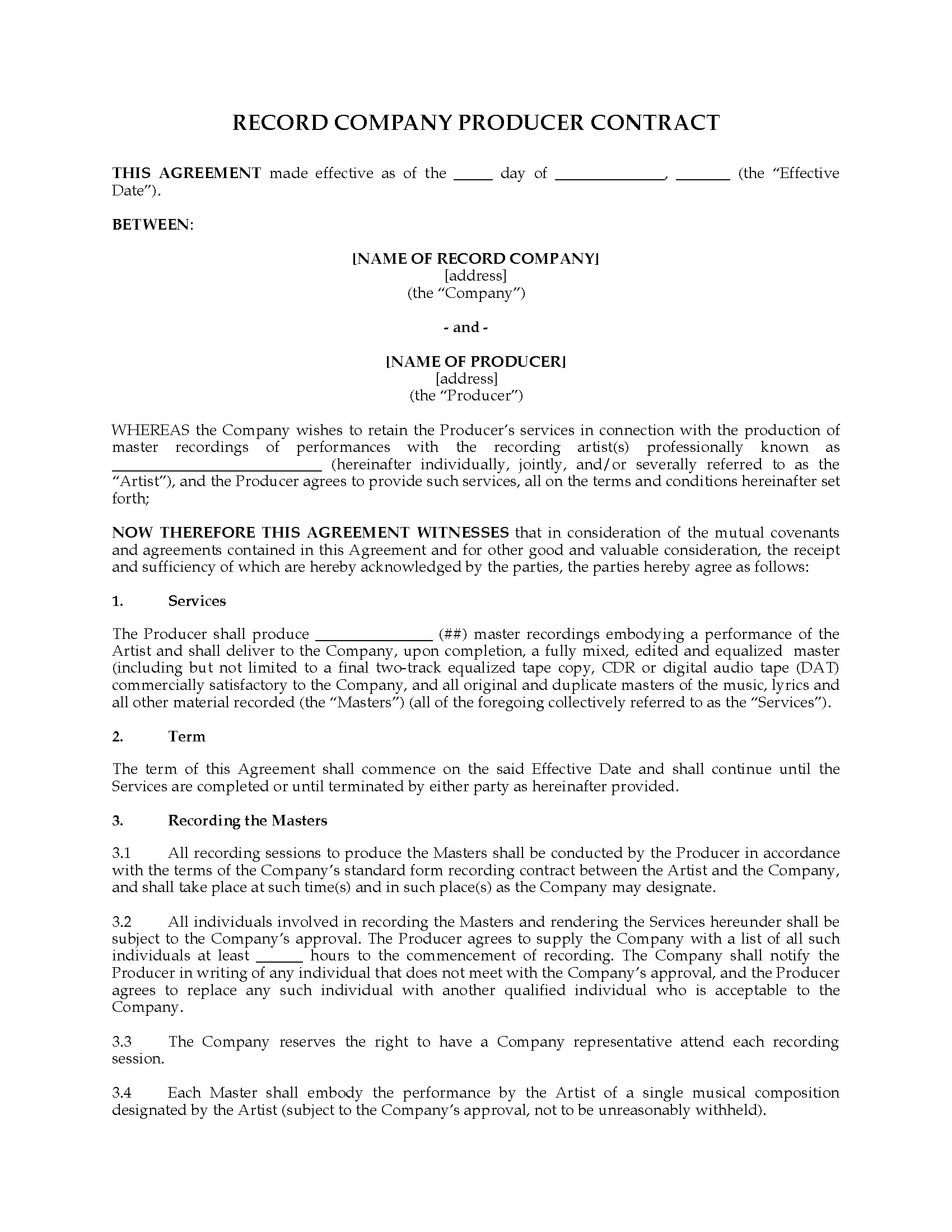 - The contract is for a specified length of time, during which the musician agrees to record a minimum number of tracks.
