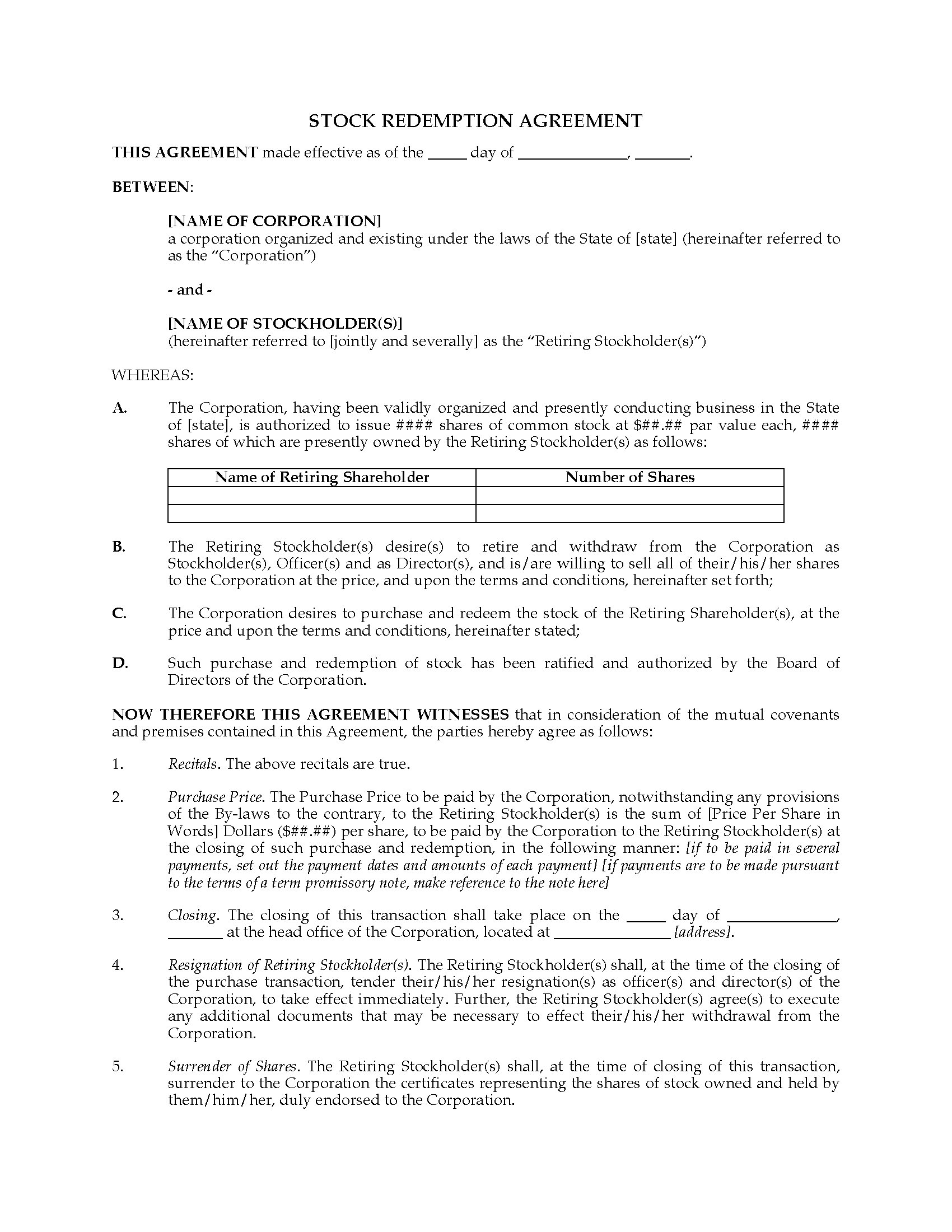 - Before offering shares to any other party, a shareholder must first offer them to the corporation.