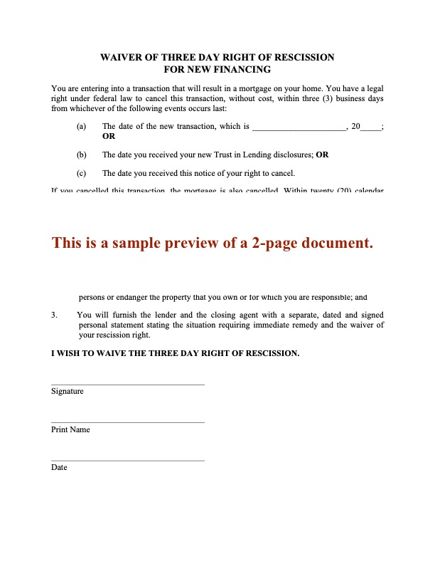 Notice of Right to Rescission | USA