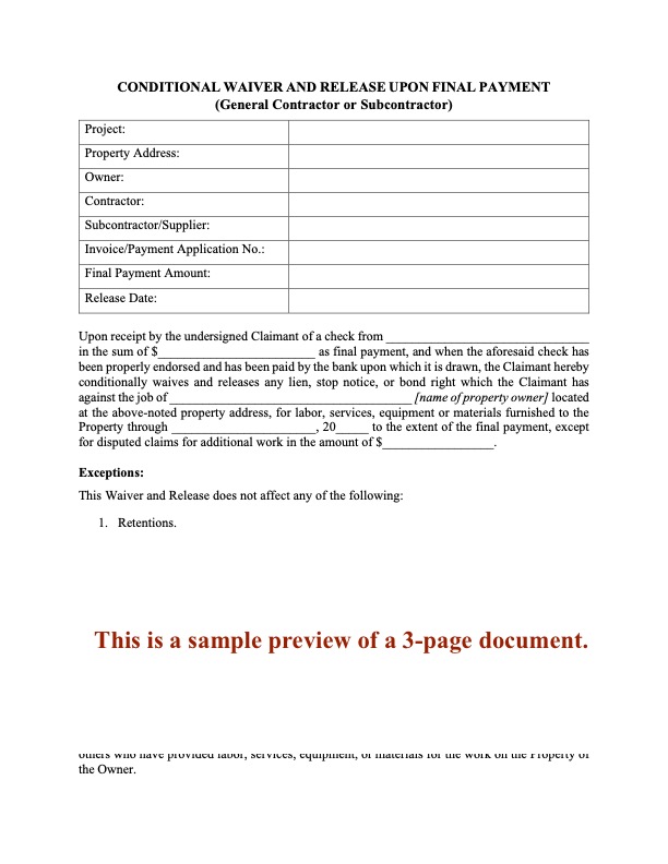 Vermont contractors, release your lien rights up to the date of a progress payment with this Conditional Waiver and Release of Lien Upon Progress Payment.