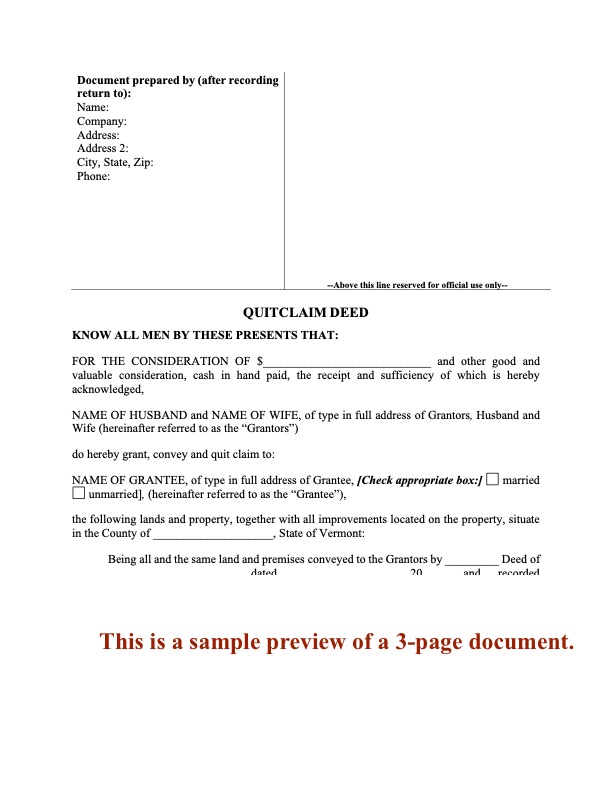 The Quitclaim Deed form is available in MS Word format and is easy to use. It is intended to be used only in the State of Vermont.