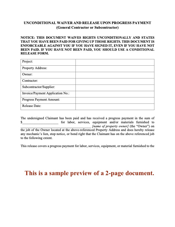 - This release form should only be used when the contractor has received final payment (except for any disputed amounts).
