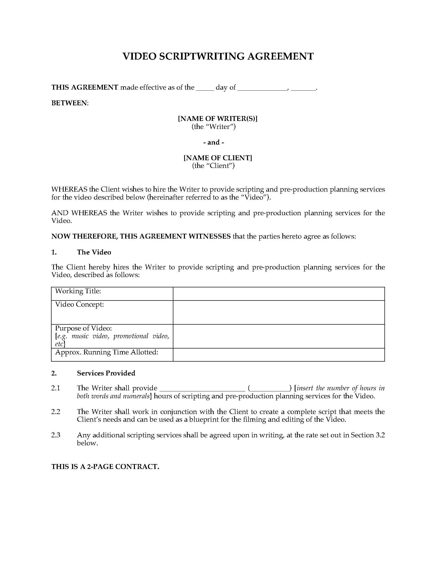In order to go viral, your video needs a great story line. Hire a scriptwriter to write yours with this Video Scriptwriting Agreement.