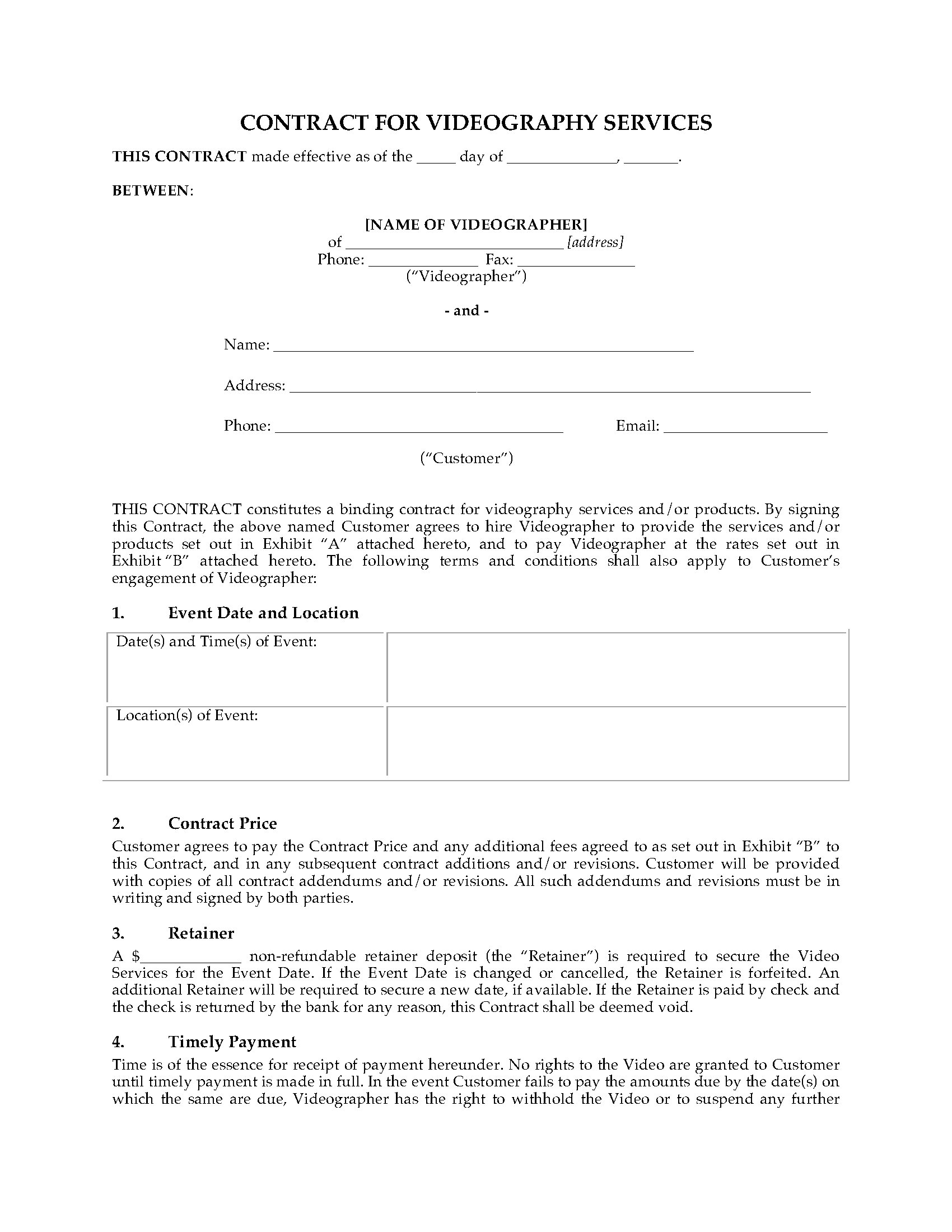 Videographer Services Contract