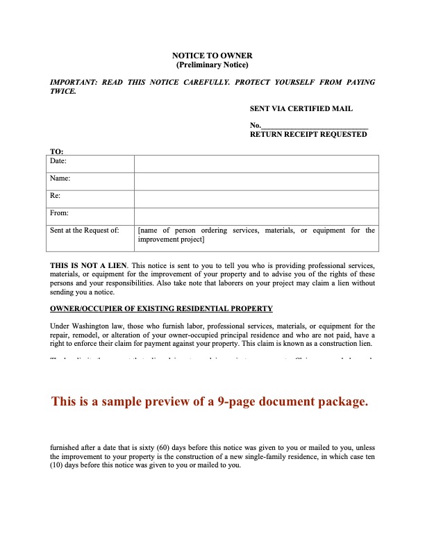 This legal document template complies with the laws of the State of Washington and should only be used within that State.