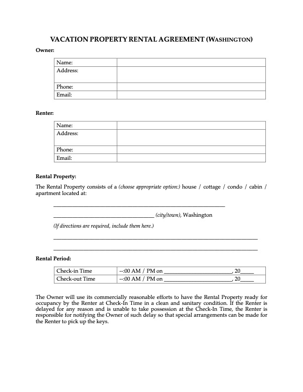 Take applications from prospective renters for a vacation home in Washington State with this Vacation Property Rental Application.