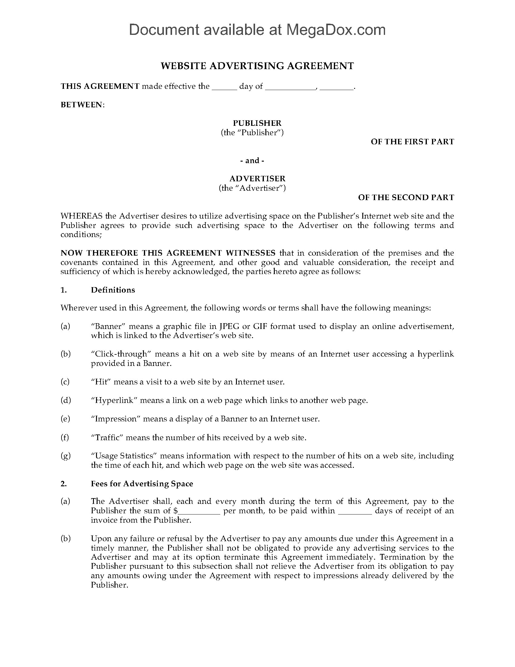 - Mutual agreement between the parties not to serve advertising of competitors of either party.