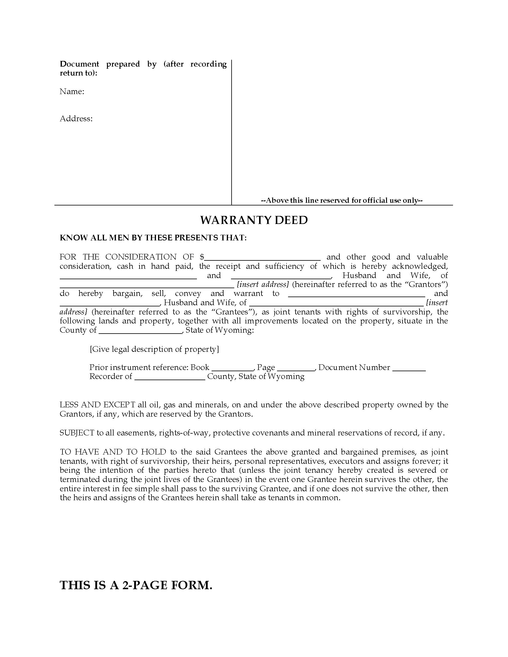 Wyoming Warranty Deed for Joint Ownership form is downloadable and easy-to-use.